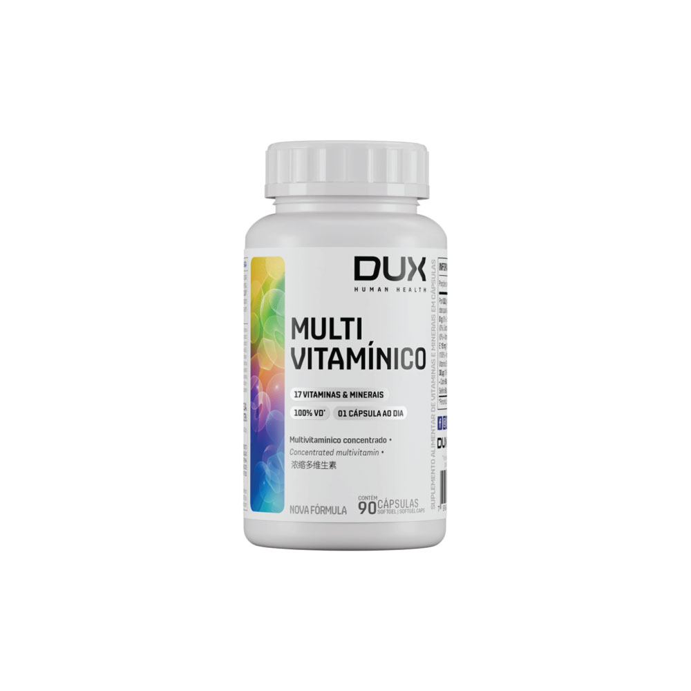 DUX® Multivitamínico é uma fórmula especial que fornece micronutrientes cientificamente selecionados para atender as necessidades específicas do corpo humano, em uma única cápsula ultra concentrada.